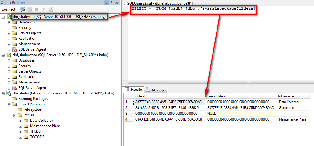 Many people do not know how to manage multiple database instances and Integration Services, while facing the end of life for Integration Services reference instance. Let’s take a small example with Integration Service installed using instance “TOTO”, which comes end of line. We will have a look to SSIS information transfer to a second instance “TITI”. This article proposes a small working method to transfer these information correctly. We start with the folders transfer and then get an eye on SSIS packages transfer.