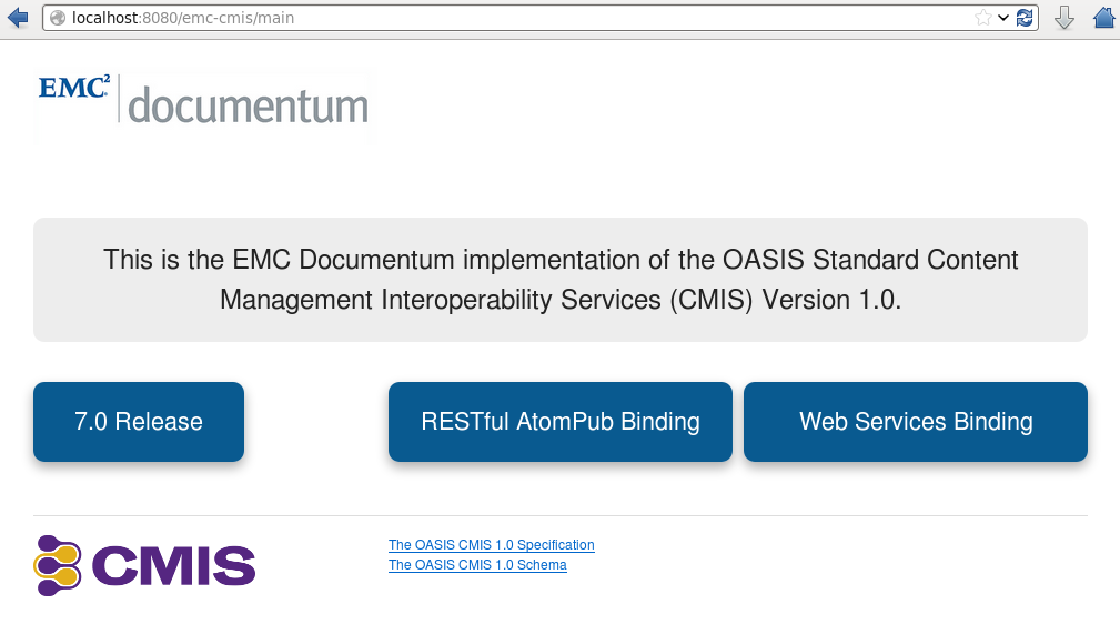 - emc-cmis.war: For Apache Tomcat, JBoss