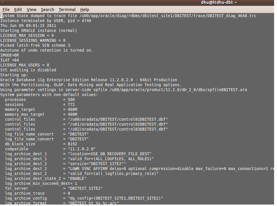 By default the server is configured to generate a log file (alert log), which centralizes the start, stops and main database activities. This log file is stored in the Automatic Diagnostic Repository (ADR), located by default in ORACLE_BASE/diag