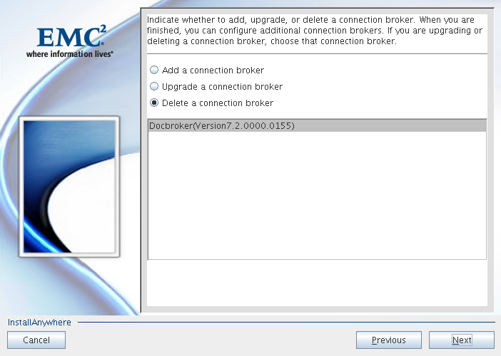 To delete a DocBroker launch the installer by executing below script: