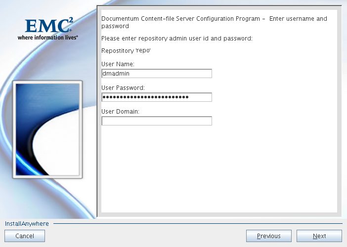 Put the password of dmadmin and click “Next”