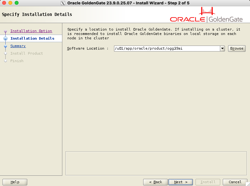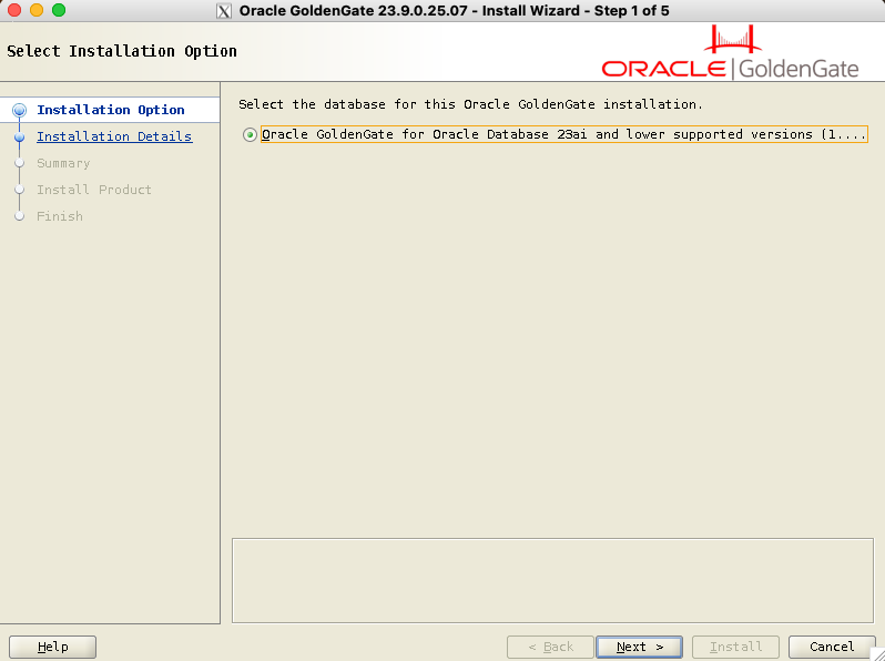 Just click Next on the first step. Starting from GoldenGate 23ai, Classic Architecture was desupported, so you don’t have to worry anymore about which architecture to choose. The Microservices Architecture is the only choice now.