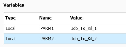 - A Control-M job which launches the script, passing as parameter the list of jobs to be killed