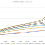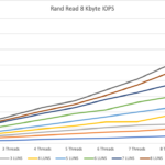 For random write, we hit some kind of limitation at around 250k IOPS. We could not get a higher value than that which was kind of surprising for me. I would have expected better results here.
