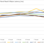 The latency for all tests was great with 0.25ms to 0.4ms for reading operation and 0.1 to 0.4ms for write operations.