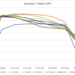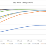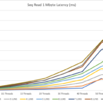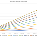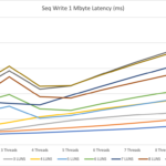 In the middle of the test, we stop the small IOPS to see the latency of just the 1 MByte IOPS.
