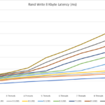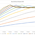 So for random write with 8 KByte blocks, the maximum numbers are around 3 devices and 10 threads or 10 devices and 3 threads or a parallelity of 30.