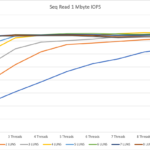 For the 1 MByte tests, we hit a limitation at around 6280 IOPS. This is around 90% of the calculated maximum speed.