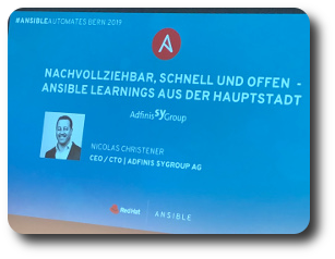A couple of weeks ago, I found in my inbox an invitation from Red Hat concerning an event organized in Bern about Ansible.