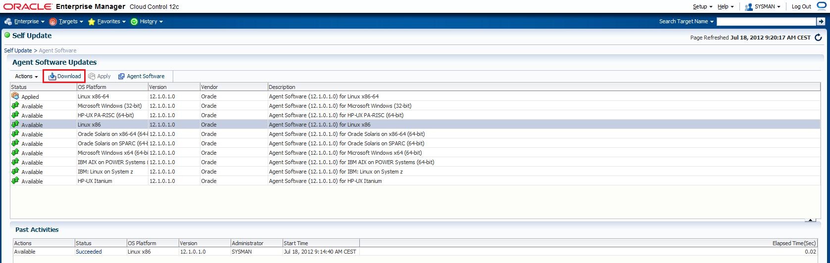 a 32 bits Linux 12c agent must be installed