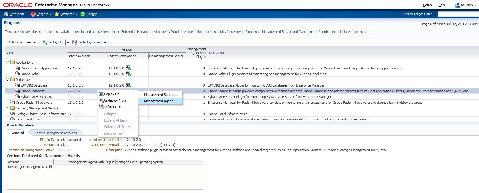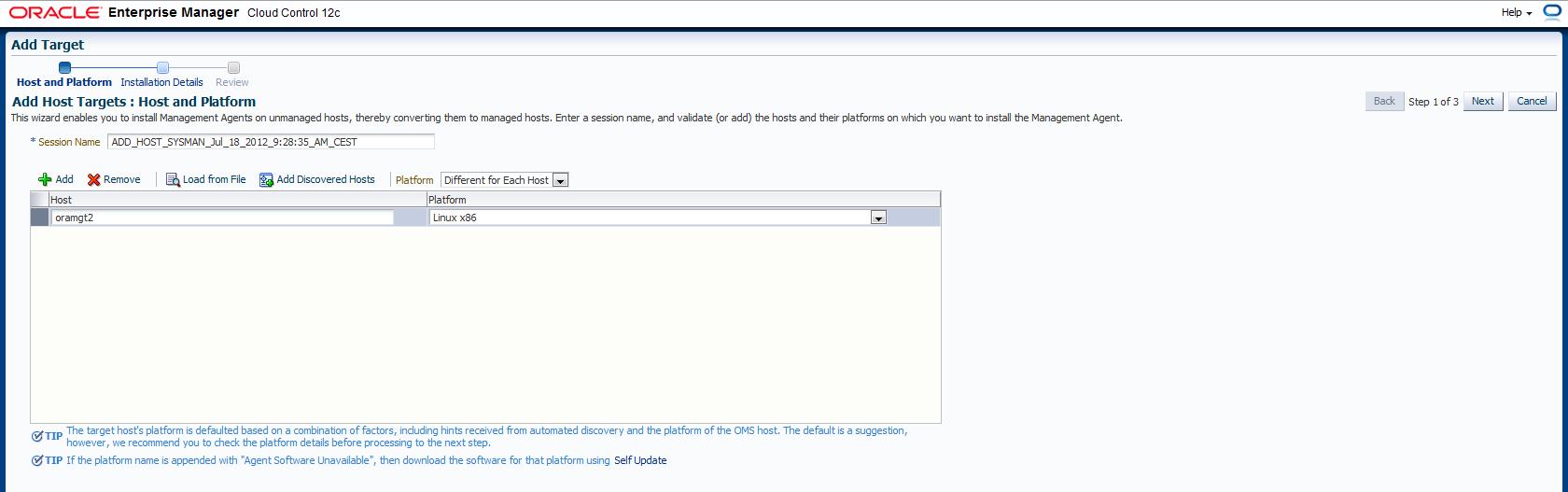 oracle@chbas0-sid092:/home/oracle/ [agent12c] emctl config agent listtargets Oracle Enterprise Manager 12c Cloud Control 12.1.0.1.0 Copyright (c) 1996, 2012 Oracle Corporation. All rights reserved. [oramgt2, host] [oramgt2:3872, oracle_emd]