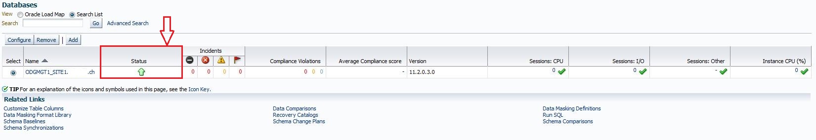 oracle@chhs-sora011:/home/oracle/ [oms12c] emcli get_targets | grep oracle_db 6 Status Pending oracle_dbsys ODGMGT1_SITE1.ch_sys01 6 Status Pending oracle_dbsys ODGMGT1_SITE1.ch_sys0 6 Status Pending oracle_dbsys ODGMGT1_SITE1.ch_sys012 6 Status Pending oracle_dbsys ODGMGT1_SITE1.ch_sys