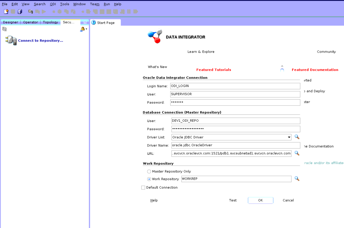 [oracle@oditest-wls-1 studio]$ cd /u01/app/oracle/tools/home/oracle/Oracle/Middleware/Oracle_Home/odi/studio/ [oracle@oditest-wls-1 studio]$ ./odi.sh . . .