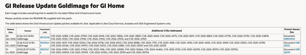 Download Base Gold image from Oracle support software from latest Oracle AI Database 26ai Grid Infrastructure (23.26.1) for Linux x86-64 (we upgrading on Oracle LInux 9)
