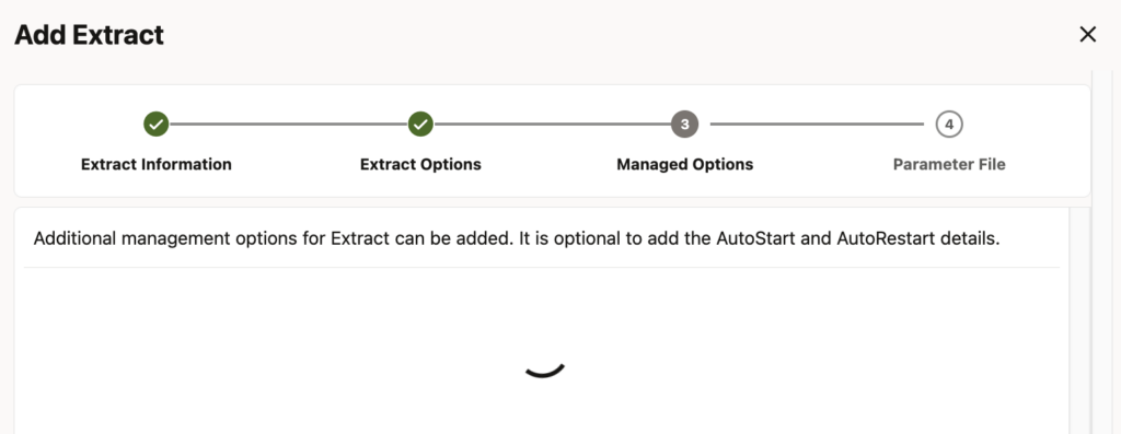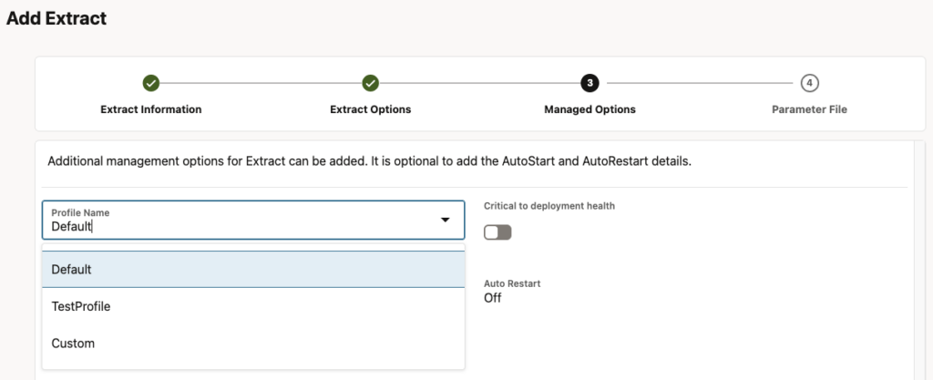 In a GoldenGate 23ai web UI, you will see the following when creating an extract, in the Managed Options step: