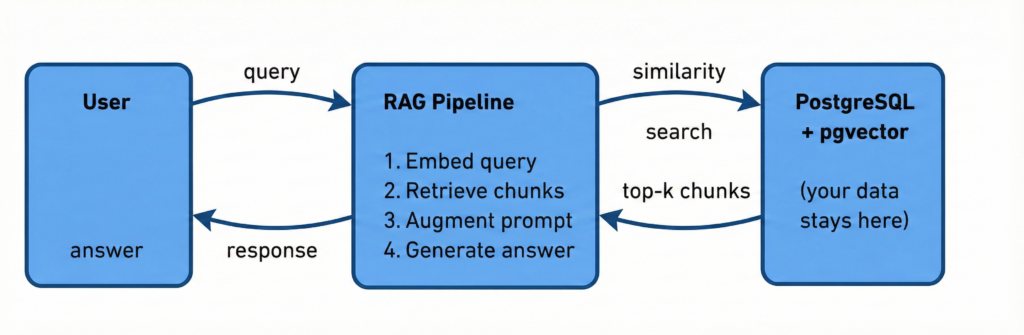 Audit logging: Every query to the vector store is a standard SQL query. pgaudit, log_statement, your existing monitoring — it all works. You can trace exactly which chunks were retrieved for which query at which time.