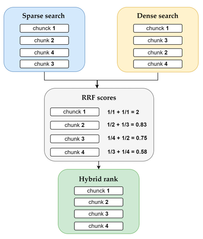 - Reciprocal Rank Fusion (RRF)