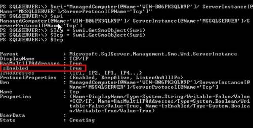 $uri = "ManagedComputer[@Name='']/ ServerInstance[@Name='']/ServerProtocol[@Name='Tcp']" $Tcp = $wmi.GetSmoObject($uri)