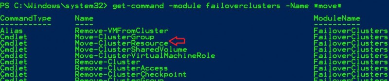 Indeed, their names put us on the right back. So we could assume safely that these resources have been moved accidentally from the cluster core resources group to the resource group related to the availability group. However, by using the cluster manager console, we quickly saw that it didn’t provide any way to move resources back to the cluster core resource group and this is precisely where PowerShell may help us. Let’s find out the right cmdlet to use for this specific tasks:
