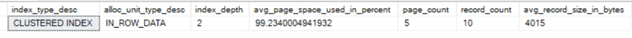 SELECT index_type_desc, alloc_unit_type_desc, index_depth, avg_page_space_used_in_percent