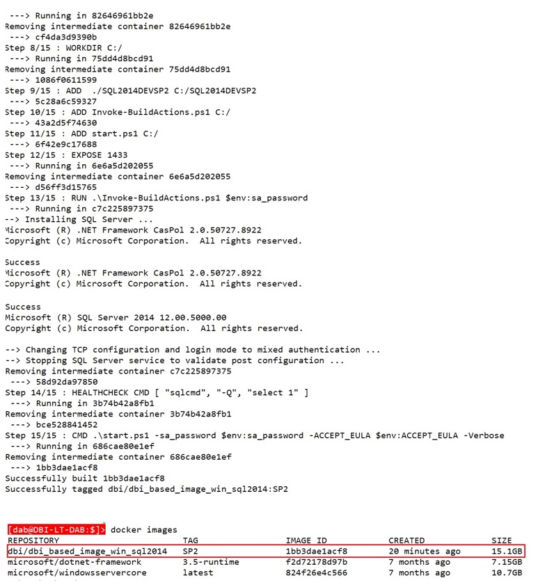 In addition, building a basic image of SQL Server on Windows remains a boring stuff and may be time consuming to be honest because you need to write some pieces of code to install optional prerequisites, SQL Server itself meaning you have first to copy binaries (CUs or / and SPs according the version) and then run the command file to install it. A lot of work and no real added values (and no warranties) at the end. That is definitely at the opposite of what I may expect as part of a DevOps process when I want to be fast and to use simply a SQL Server docker based image. Indeed, in this case, I would like to just pick up the right docker image version and corresponding tag and then to focus on my work.