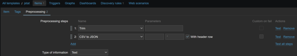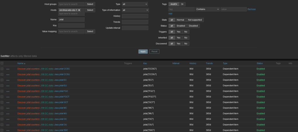 Now, if we click on hostname and Items, I can filter on “jstat” and find all my automatically created items: